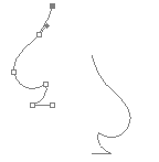この状態でアンカーポイントをクリックするとアンカーポイントが■に変り、この位置から再びパスを作成していけるようになります。ここでは新しいアンカーポイントを作るのではなく、右側のパスと結合します。