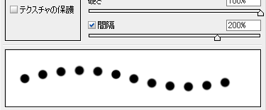 ここで応用として、ブラシの設定をちょっと変えてみましょう。