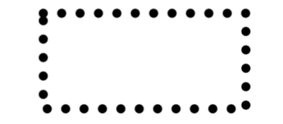 ただし、表のようなものを作ろうという場合はやや注意が必要になります。「シェイプツール」の「四角形」でパスを引いて、その境界線を描くと、パスの始点から終点まで等間隔に点線を描いていくことになります。