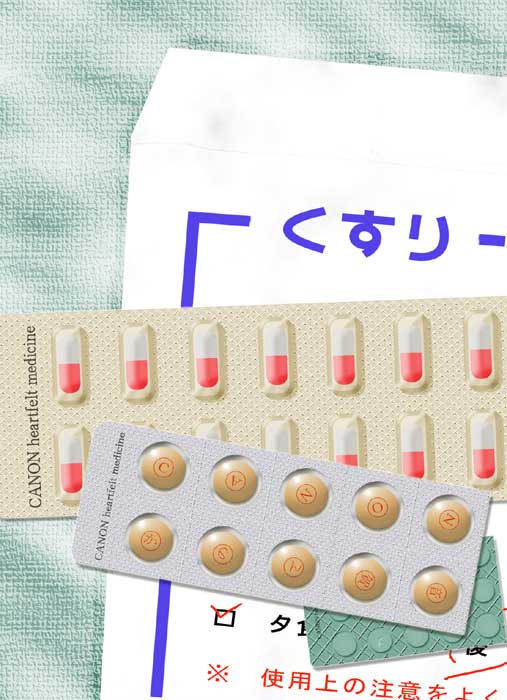 解説 : 見た通りに薬です。錠剤に私の娘の名前(CANON)を描きました。でも、本当の薬は娘の笑顔です。