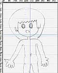 左図が体半分のパスを引いたところです。手描きの下絵と比較してもらえば解ると思いますが、だいぶ違うと思います。下絵はあくまでも参考程度ということです(笑)。