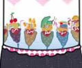 服の絵を沢山作って着せ替え人形の要領で数パターンつくり、横に並べたものが