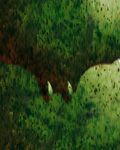 筋肉のような筋を想像しながら、それでも虫っぽさを持たせるため、ちょっと大胆に緑と赤で筋を表してみました。ブラシでそれらしく筋を何本か引きます。これは緑にしました。大きさは適当です。ラインを引いたら描いた範囲を選択範囲に指定し、境界を黒で描きます。
