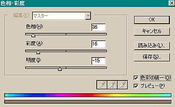 <□ 色彩の統一>にチェックをし、色相、彩度、明度、それぞれの数値を
