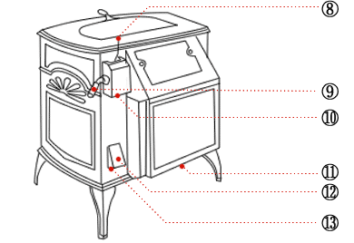これを開閉させて薪を入れます。また、この部分は鋳物であるストーブ本体とは材質が違い、熱伝導が高いため料理や湯沸しに使用できます。 |
